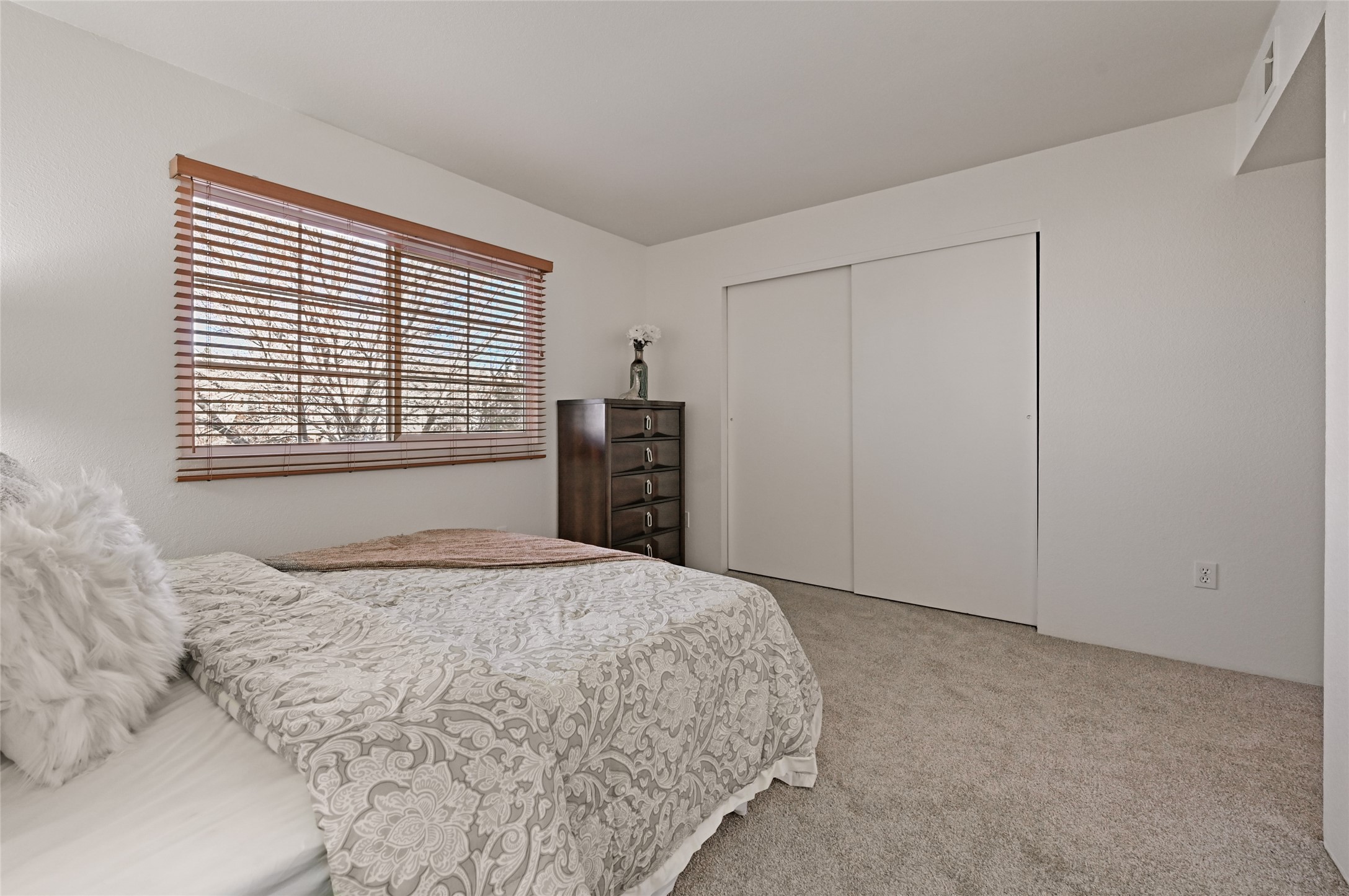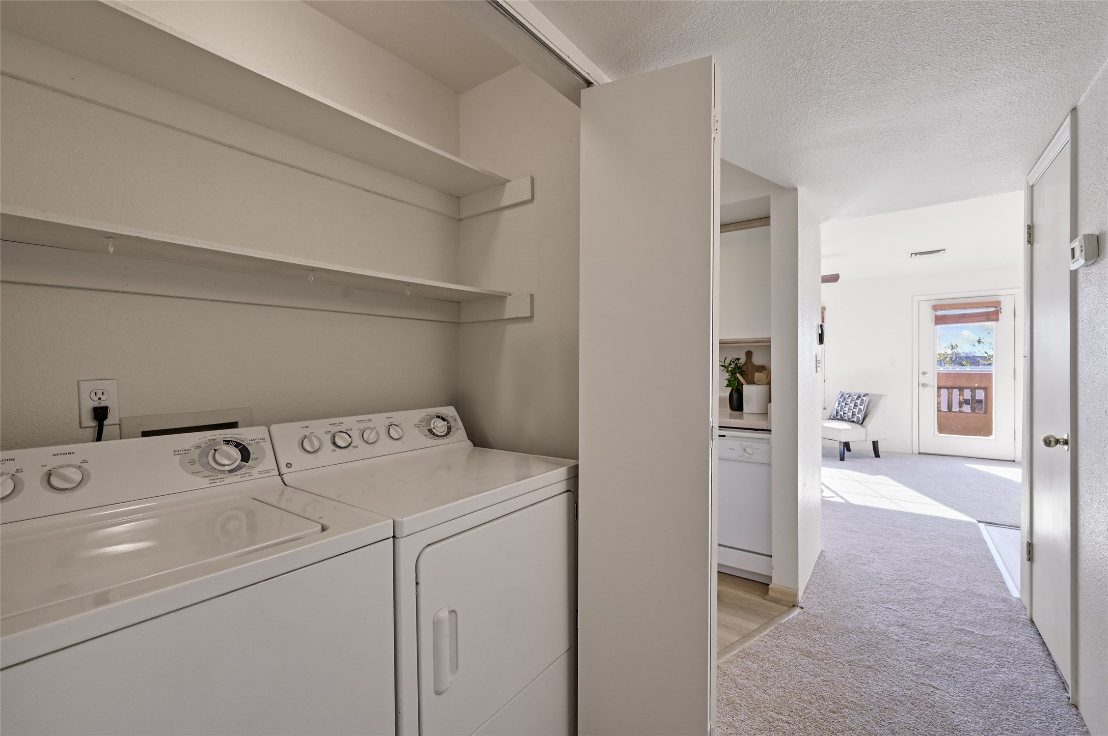 Deluxe 900+sf 2 bed/2 bath condo in highly sought after, centrally located, high amenity Dos Santos complex! This 2nd floor unit has a bright South facing living room w/direct access to balcony that has plenty of space for a table and chairs to drink in the forever skies and mountain vistas. Classic kitchen with strong counter space, dishwasher, and space for stools. Brand new carpet + tile flooring throughout including in primary bedroom. In unit washer/dryer and layout could work for live/work setup, roommates, etc. On site parking available. Tons of amenities including clubhouse, gym, pool, outdoor grills, and much more!