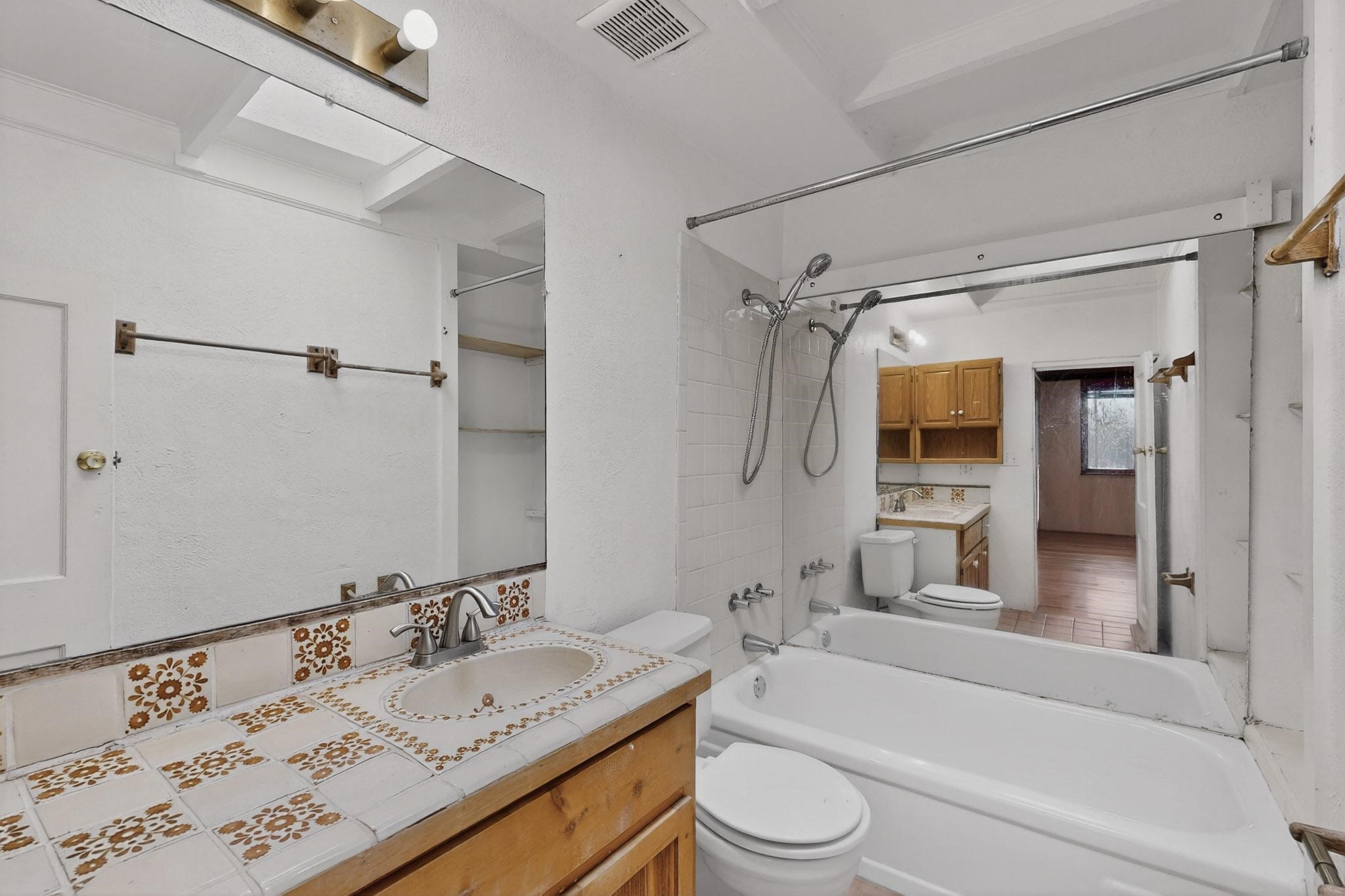 Discover an exceptional investment or live/rent opportunity just minutes from the Santa Fe Plaza and the vibrant Railyard District. This versatile duplex features two spacious 1BR/1BA units totaling 1,320 sq ft, each with its own distinct character, private outdoor space, and two dedicated parking spots. A shared laundry room conveniently connects the units while maintaining privacy. A spray foam roof (10y) with fresh elastomeric coating (2y) and acoustic-insulated separation between units adds comfort, efficiency, and peace of mind. Live in one home and rent the other, or maximize income potential by leasing both--this property offers flexibility for owners, investors, or multi-family living.UNIT A:Warm and artistic, Unit A welcomes you with a large living room featuring a wood stove and hardwood floors reclaimed from a basketball court--a true conversation piece. Custom shoji doors create a stylish division between the living and bedroom spaces. The open-concept kitchen includes a gas stove and blends seamlessly with the living area. Custom coved ceilings, numerous skylights, and unique colorful accents make the interior attractive, and the private fenced outdoor patio is perfect for morning coffee or evening relaxation.UNIT B:Bright and inviting, Unit B boasts a spacious living room with parquet hardwood flooring and abundant natural light. The kitchen showcases unique sheet-metal paneling for a contemporary, artistic touch. The bedroom features serene American Clay plaster walls, adding texture and warmth, with an en-suite bathroom boasts slate tile, walk-in shower, and custom skylights. A large private yard offers ample outdoor living potential--gardening, pets, or entertaining. A 220V hookup in the yard makes your hot tub or workshop vision possible. With its unbeatable location, character-rich interiors, and strong rental flexibility, 617 Paulin St is a rare find in the heart of Santa Fe. A must-see for investors and homeowners alike. Property to be sold as-is.