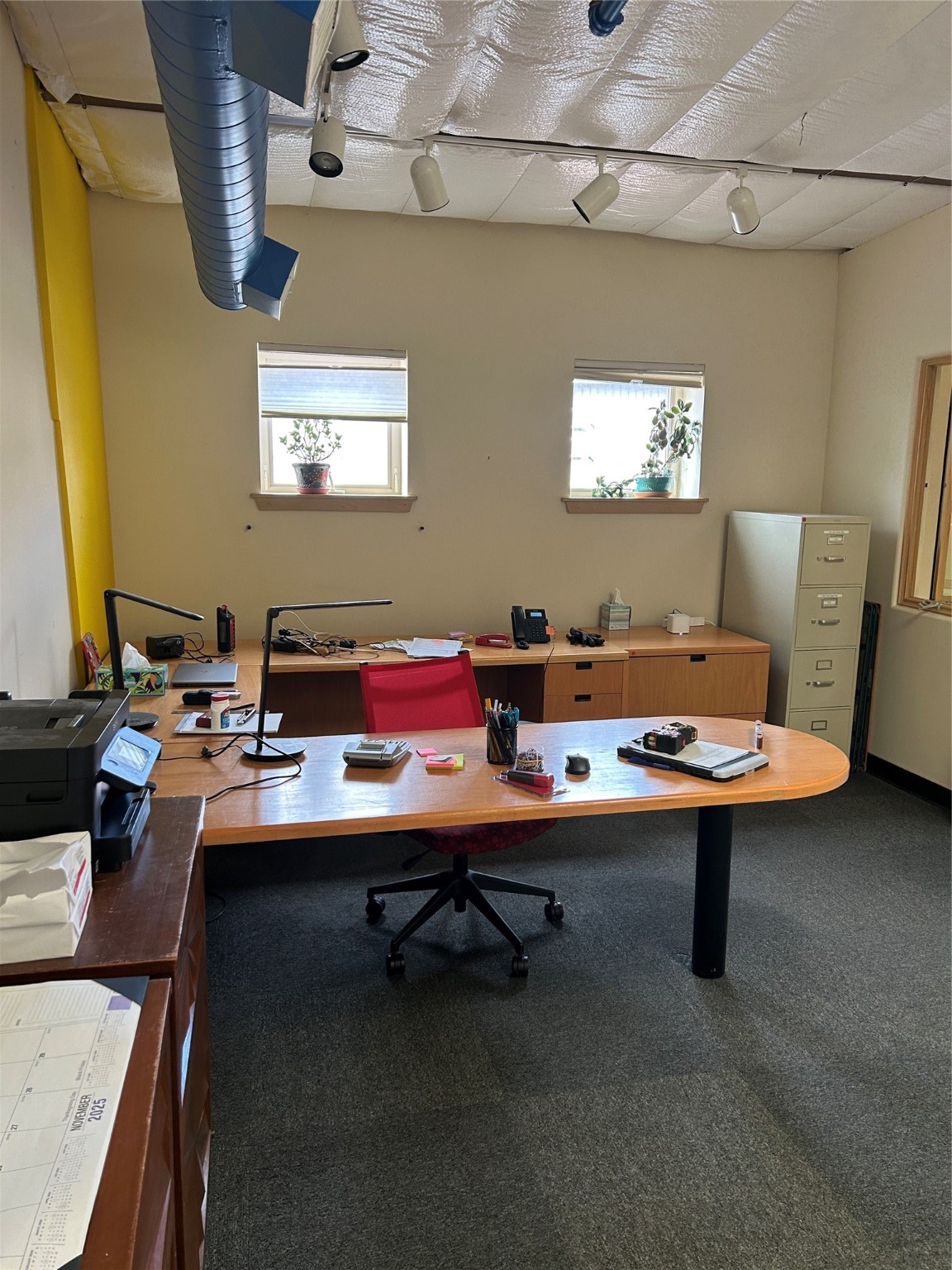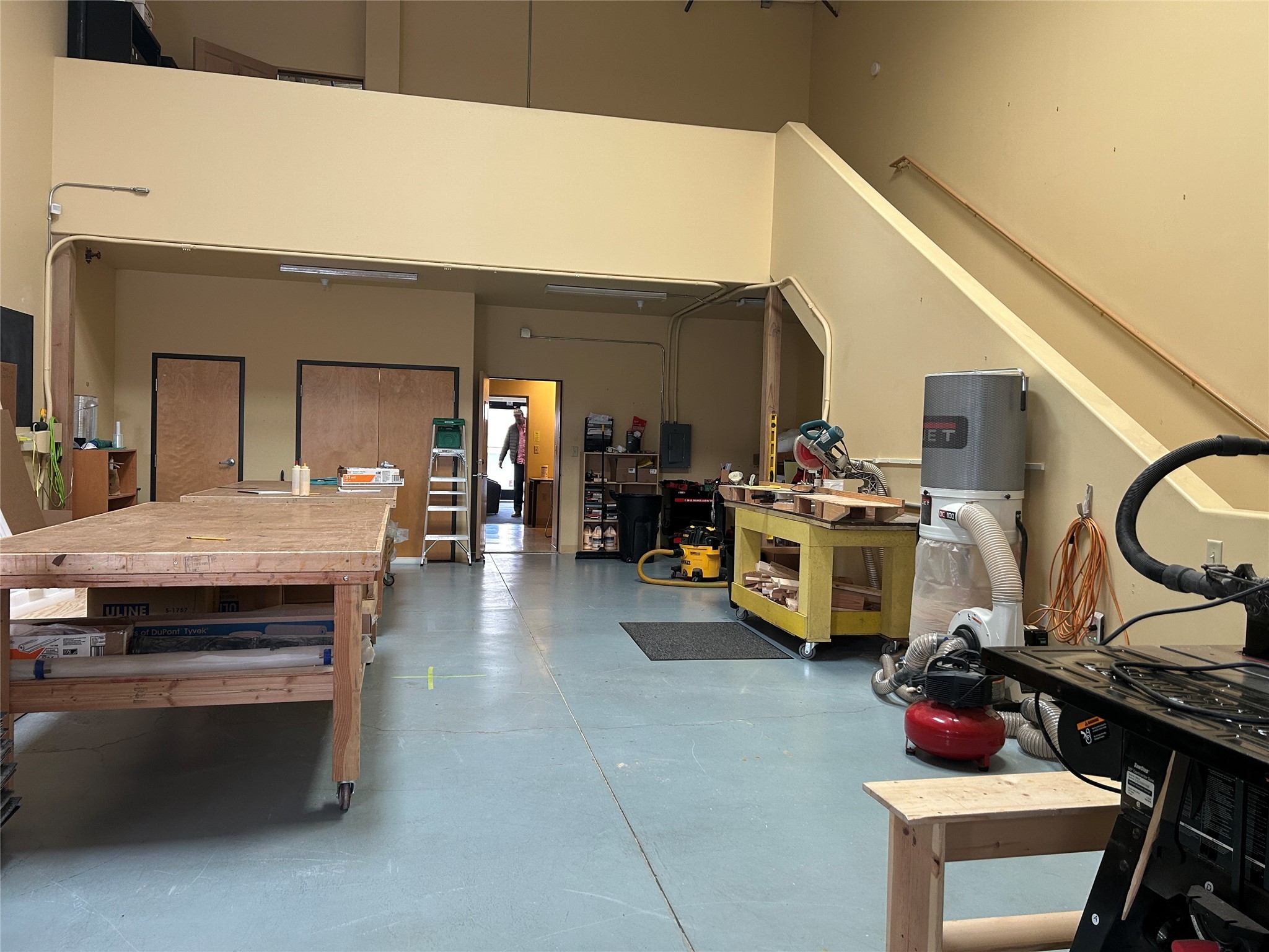 Beautiful Commercial Property that is just right for a live/work (upstairs bath with shower, downstairs kitchenette). 4 comfortable office spaces (2 upstairs 2 down). Nice reception area. In the back is a large workspace with 23 foot ceilings, a large overhead garage door and drive up loading dock. Plenty of parking both front and back. Office units have HVAC, Warehouse/work space has Evaporative cooler and Gas space heater. Limited Condo Assn. coverage. ADA compliant downstairs bathroom. Condo Assn fees are $283.33 a month.