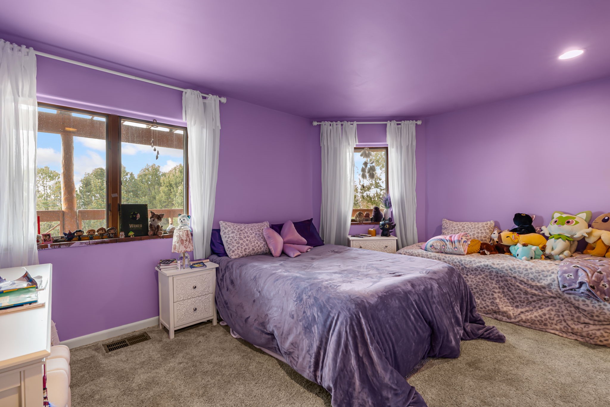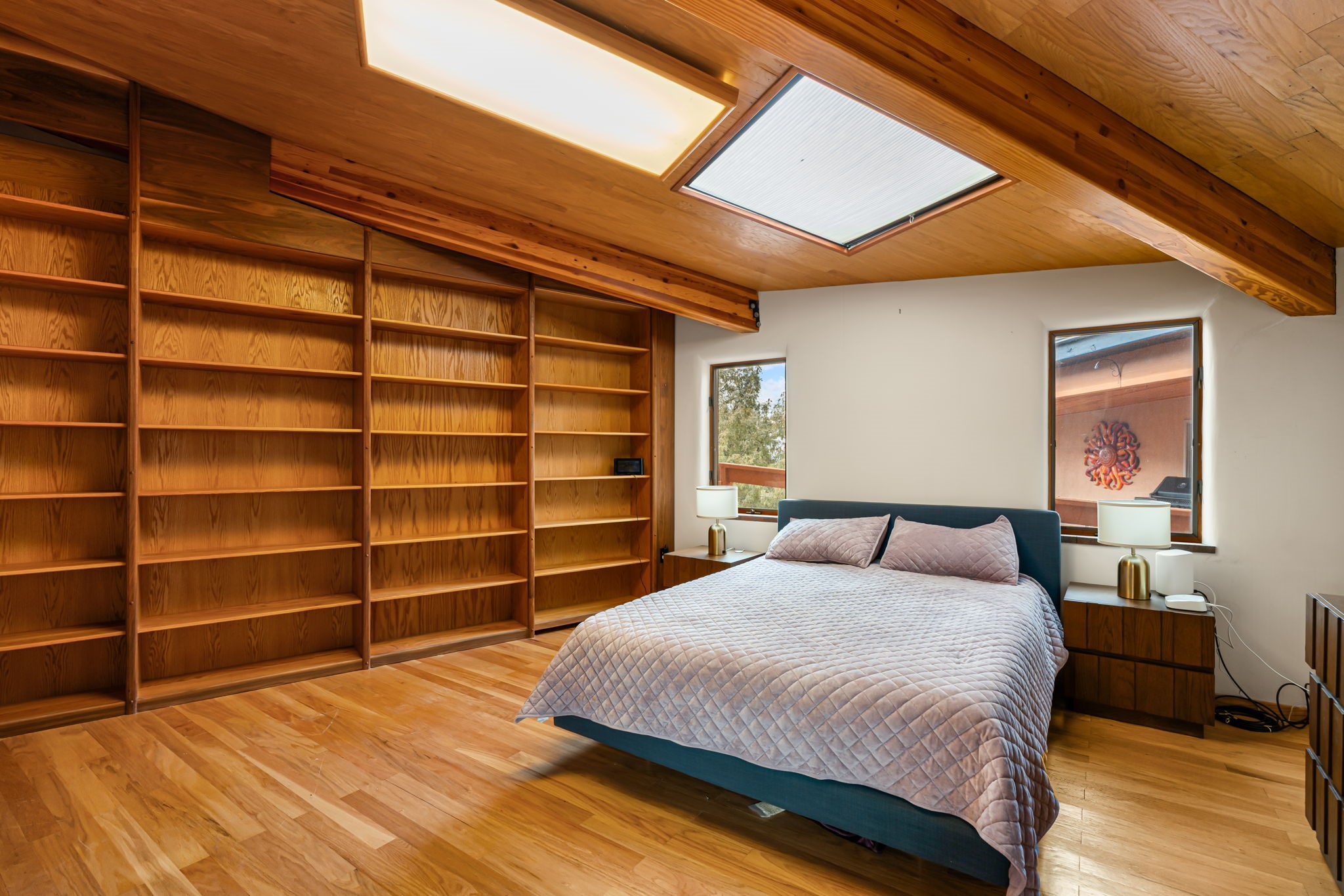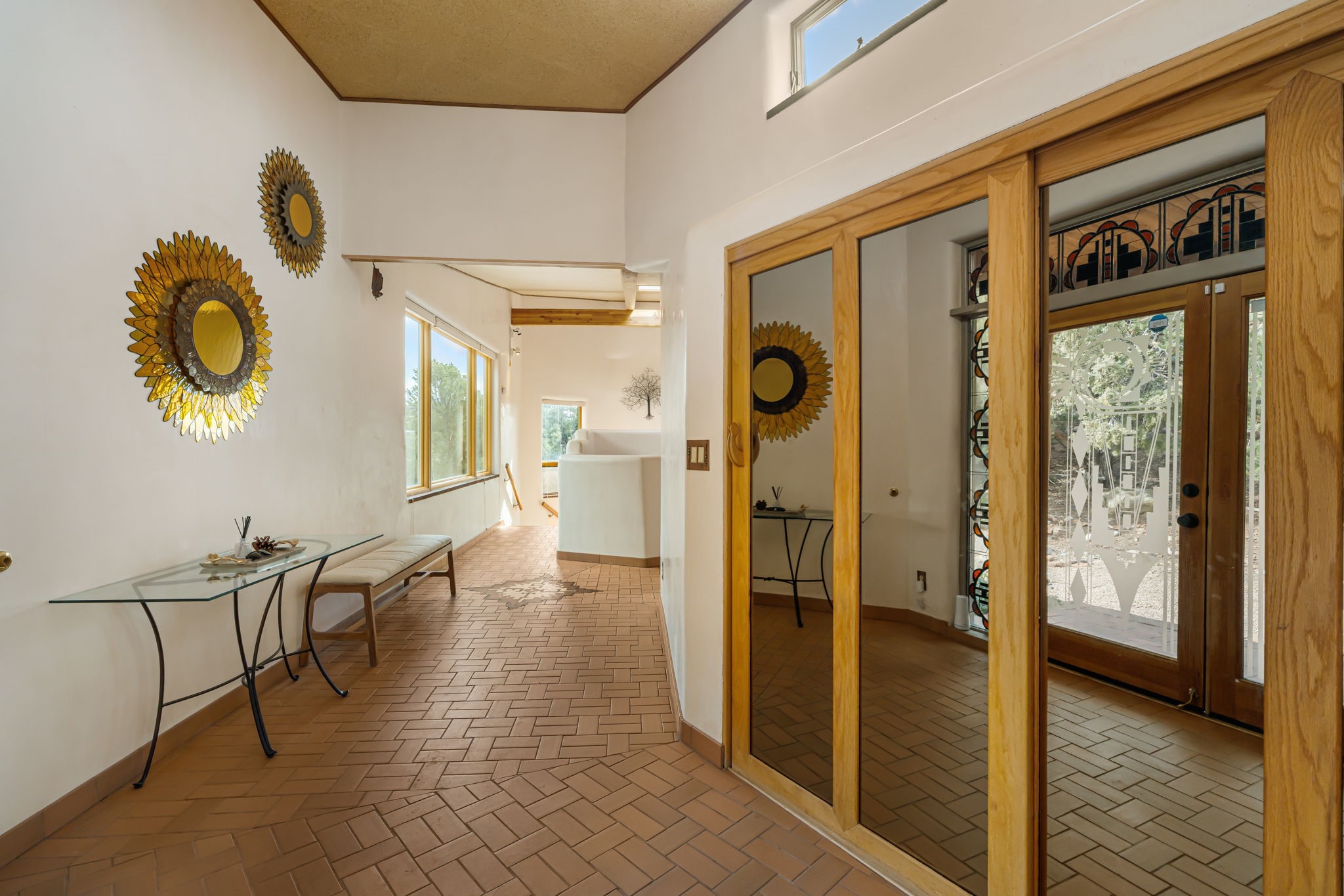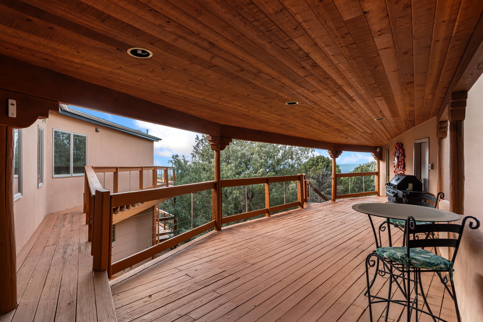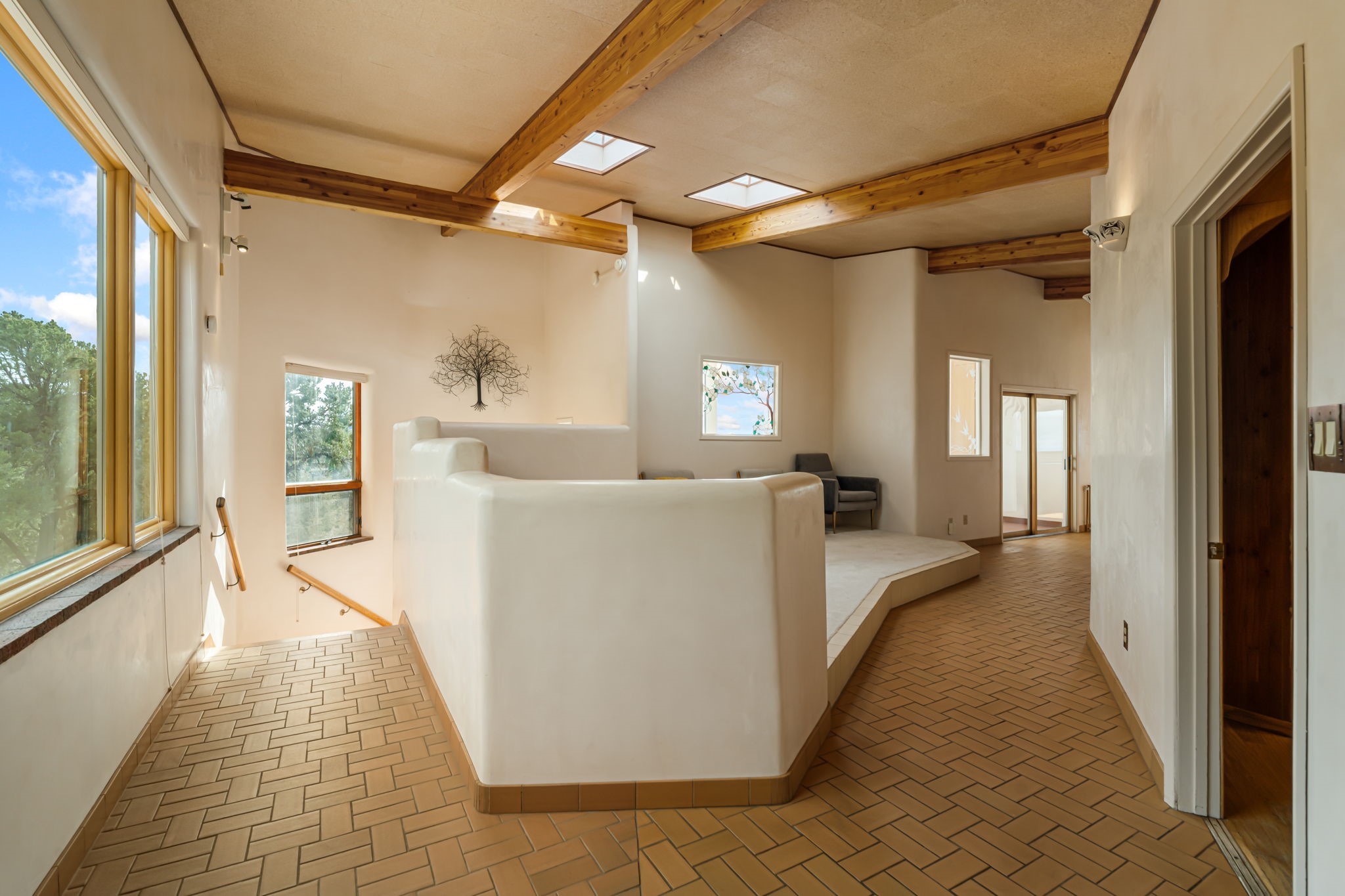 Imagine a stunning retreat atop the world, where the enchanting views of Santa Fe and the renowned New Mexico skies stretch out before you. Elevated at 8,000 feet, this home offers unforgettable western views with sunsets that paint the sky with vibrant colors. Inside, you'll find a blend of artistry and craftsmanship with diamond plaster walls, wooden beams, etched glass and cozy cork ceilings, all framed by a newer roof and stylish stucco that add to its charm. Every corner of this home exudes creativity from the original owners, from the beautifully situated kitchen and living room that bathe in westward light to an inviting pottery/art studio that doubles as a sun room or plant sanctuary. The thoughtful design embraces passive solar elements and solar panels, making it energy efficient. The versatile and separate studio is not just an area to create--it's a dream come true for writers, artists, designers or jewelry makers looking to bring their creativity to life. And with abundant storage throughout, you'll have room for all your inspirations. Located just moments away from the serene Santa Fe National Forest, thrilling slopes at the Santa Fe Ski Basin, and the scenic hiking/biking trails of Dale Ball, this home isn't just a place to live; it's a canvas for your life's next masterpiece.