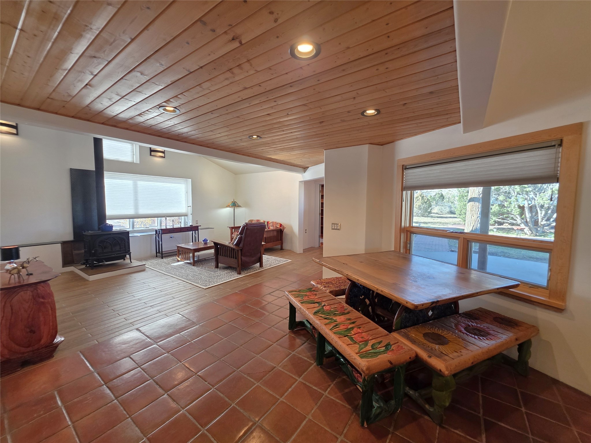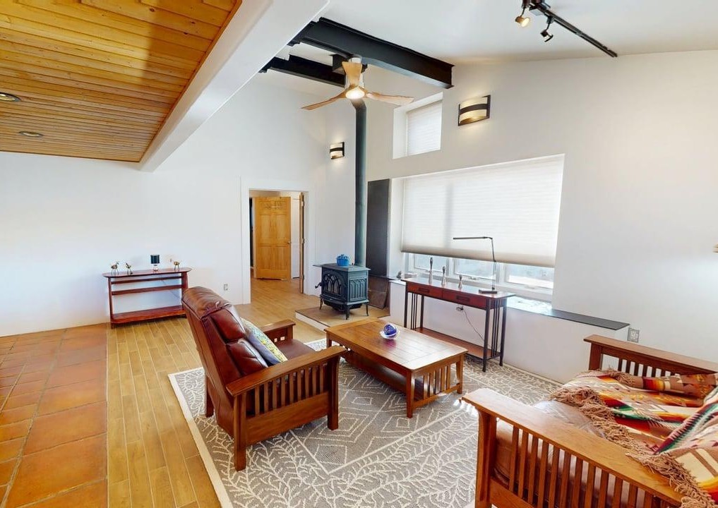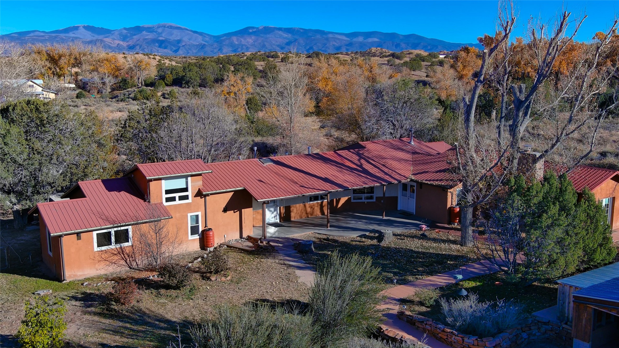 Experience the best of both worlds in this classic Northern New Mexico adobe, where timeless architecture meets a contemporary, light-filled interior. Spanning 3,237 sq. ft., the home offers 3 bedrooms, 2 baths, and an inviting upstairs loft with generous storage. The residence features a chef's kitchen, soaring ceilings, and a dining/family room warmed by a wood-burning stove.The large primary en-suite includes a spacious walk-in closet system, a luxurious soaking tub, and a separate shower. The bedroom's high ceilings and walk-out access to the garden create a private retreat. The expansive living room--anchored by a wood-burning fireplace--can be configured as both a living space and formal dining area. A 231 sq. ft. front patio provides an exceptional setting for entertaining or simply enjoying the outdoors.Several versatile outbuildings complement the main home: a 2-car carport, a 1,259 sq. ft. garage/workshop with an attached studio and office, and a 720 sq. ft. adobe garage with warehouse-style roll-up doors--ideal for artists, craftsmen, hobbyists, or a home-based business.Set on a sprawling 3.17-acre lot, the offering also includes an additional 2.52-acre parcel with its own water rights and an 840 sq. ft. garage/storage building--for a combined 5.69 acres. The property is a gardener's or farmer's dream, boasting 13.26 acre-feet of irrigation water rights across the two parcels, plus a private well with water rights.With boundless potential for future development--and room for horses--this unique property is located just 20 minutes from Los Alamos or Santa Fe. Don't miss the aerial video and 3D virtual tour!