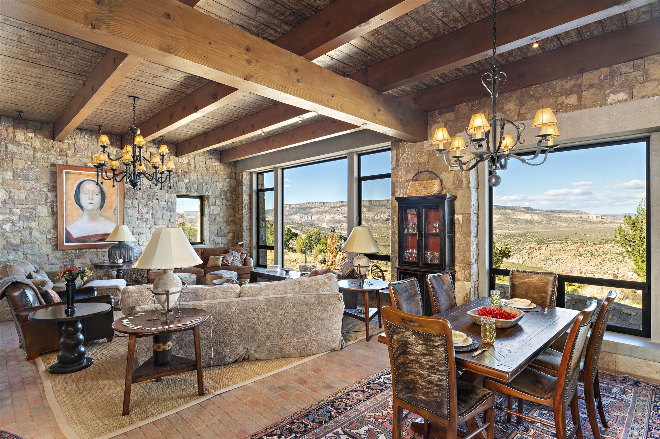 About 60 miles north of Santa Fe, Abiquiu and surrounding communities of El Rito, Gallina, Ojo Caliente and Chama to the north are some of the most beautiful landscapes New Mexico has to offer. Celebrated artist Georgia O’Keeffe lived at nearby Ghost Ranch for many years and also bought a house in Abiquiu in 1945, using it variously as an art subject, residence and studio for several years.