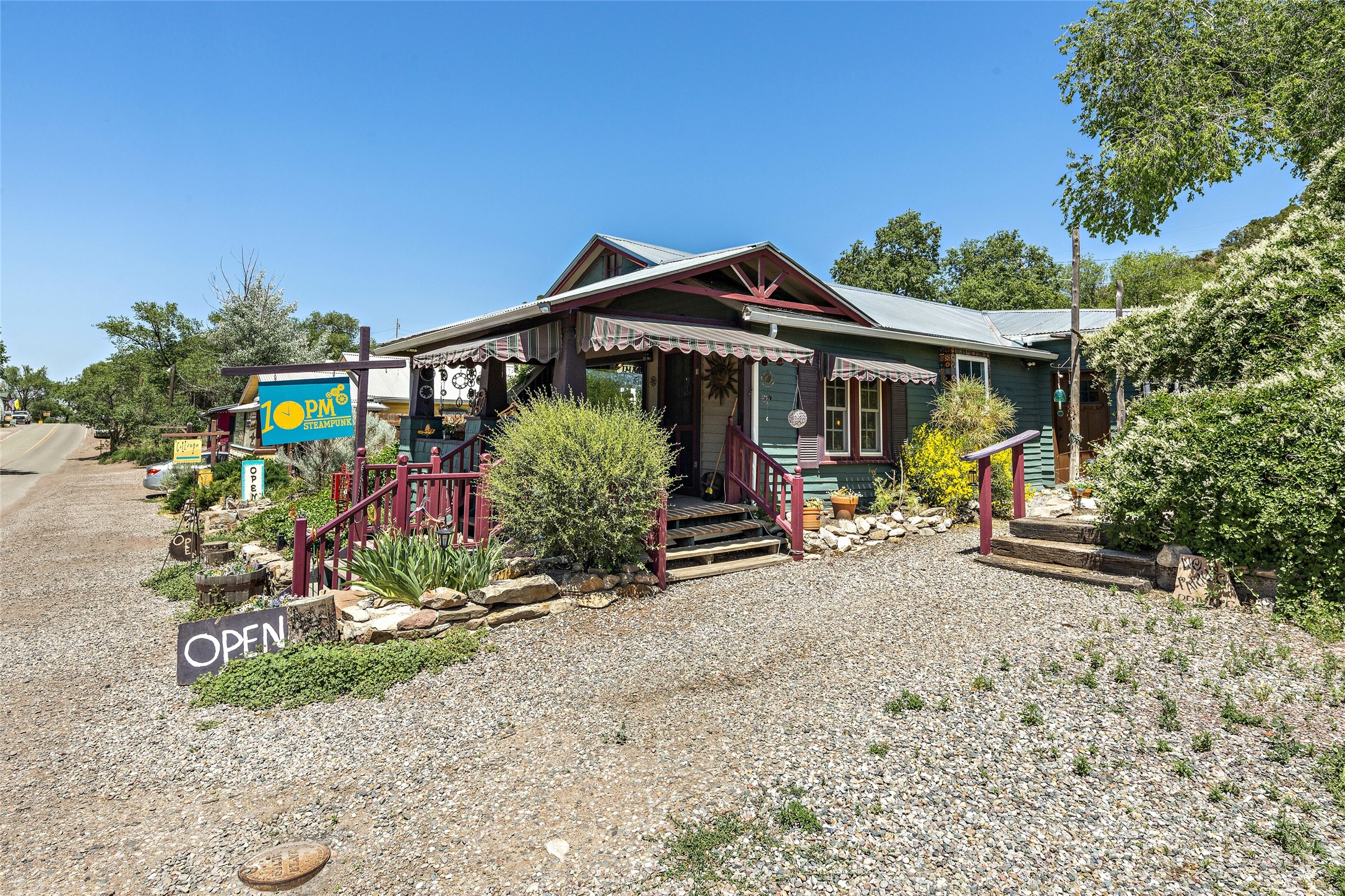 Nestled along the scenic Turquoise Trail, Madrid is one of New Mexico’s most distinctive and artistic small towns. Once a booming coal-mining settlement and later a near-ghost town, Madrid has transformed into a vibrant, free-spirited community known for its galleries, live music, quirky shops, andhistoric charm. Madrid feels other-worldly to visitors. Colorful storefronts line the main street, artists work out of converted miners’ cabins, and the town regularly hosts festivals, studio tours, and local music events. Its lively weekend scene attracts visitors while still preserving a relaxed, small-town authenticity. Homes here are early 20th century wooden structures painted a variety of colors. The John Travolta movie, “Wild Hogs” was filmed in Madrid, which is also a favorite filming location for Westerns due to its authentic atmosphere. Madrid’s character blends Bohemian creativity, Old West history, and a welcoming, close-knit feel.