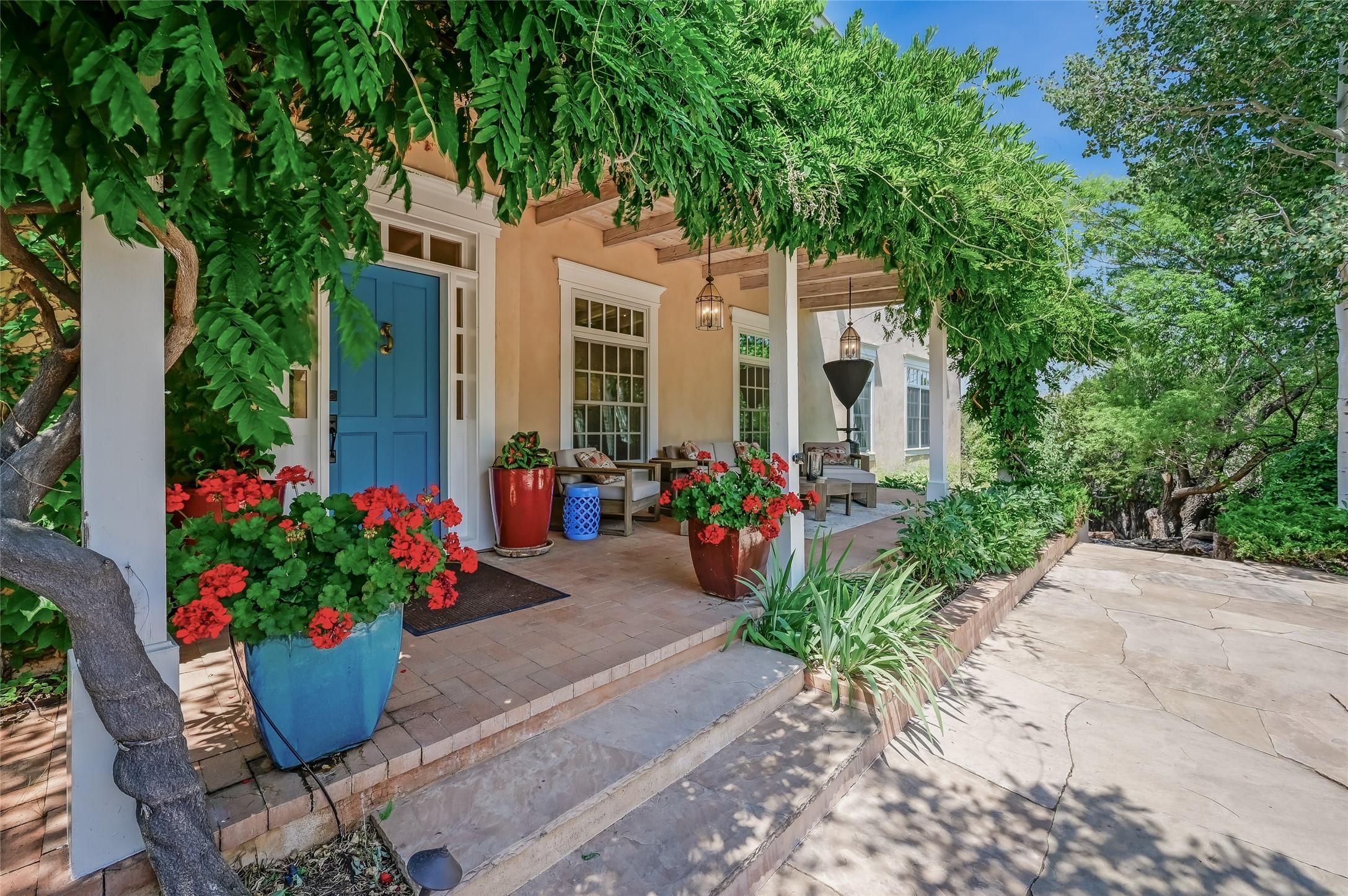 The Northeast of Santa Fe, within city limits, combines the pleasures of quiet living with the conveniences of location. On every tree-lined street are examples of newer, award-winning architecture and well-established, older adobes. In addition to the famous Plaza, this area includes all the land reaching up to the Jemez and the Sandias. Newer developments appear on your left and right as you climb in altitude into the tree-studded Sangre de Christos. Historically this area was for many years the center of life in Santa Fe. On one side of the Plaza stretches the Palace of the Governors. Constructed in the early 17th century as Spain’s seat of government, the Palace of the Governors in Santa Fe chronicles and documents the history of the city, as well as New Mexico and the region. Stroll down East Palace Avenue past galleries, shops and lovely hotels.
