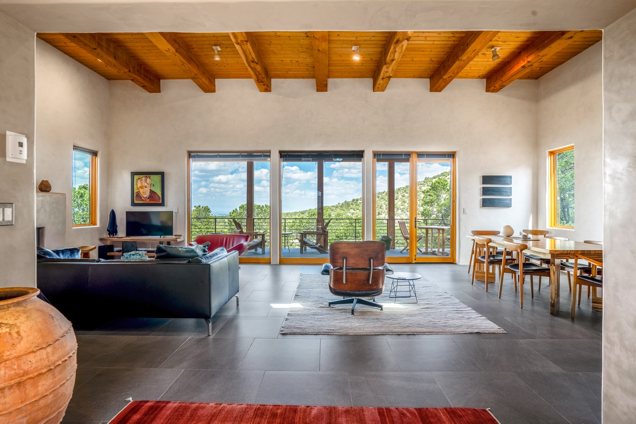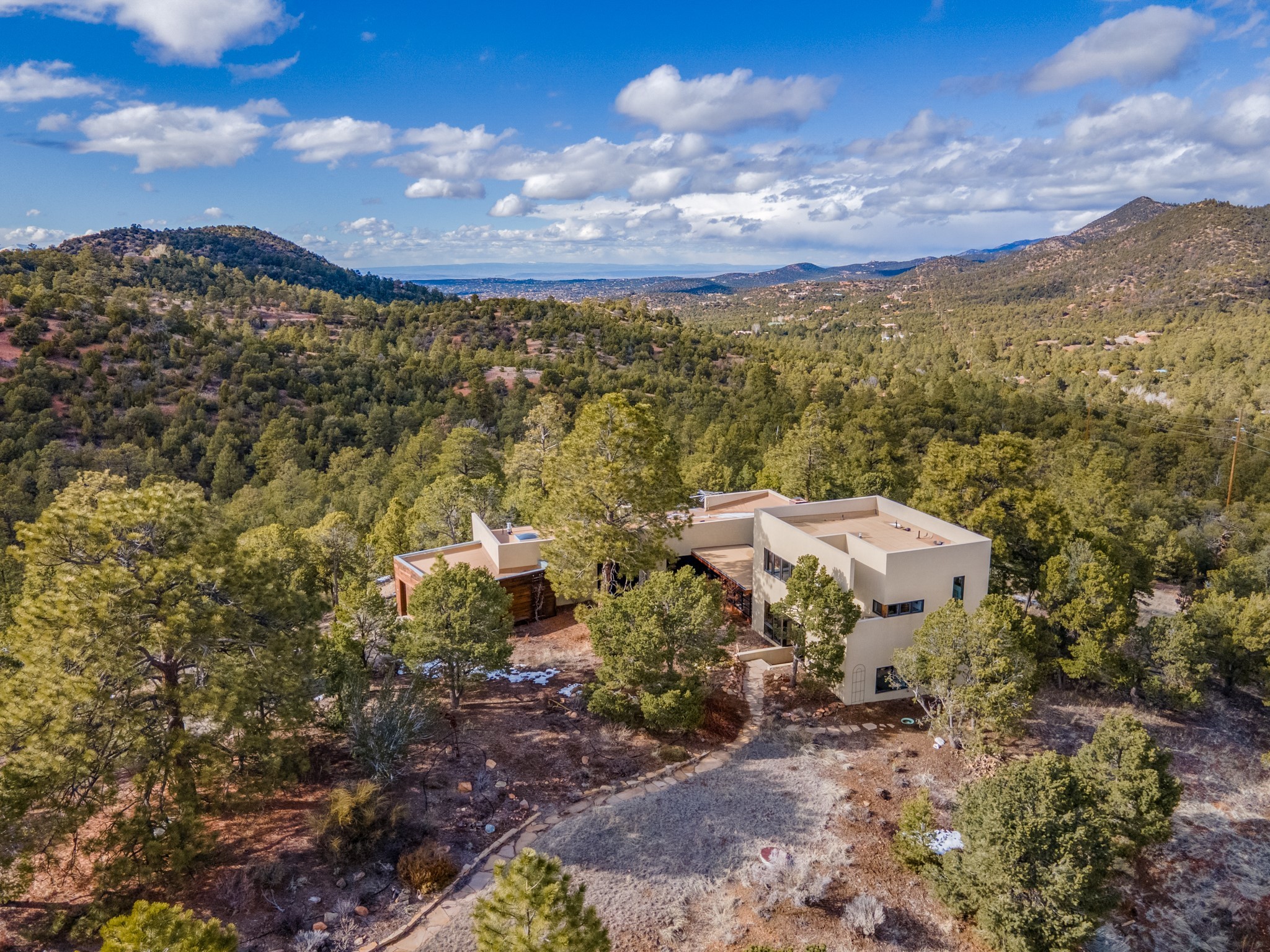 As the Old Santa Fe Trail winds north, these lovely, heavily-forested communities run alongside. Located in the foothills of the Sangres, the lower elevations provide rolling hills of pinon and juniper with the high-elevation nestled in mountainous terrain. All have wonderful views of the Sandias and famous Santa Fe sunsets. Most lots start at 2.5 acres and some are over ten. The area includes Cloudstone, La Vista, Coyote Mountain Road, Mercer, Double Arrow Road, La Barberia, Overlook I and II, north and south of Old Santa Fe Trail from Camp Stoney cutoff.